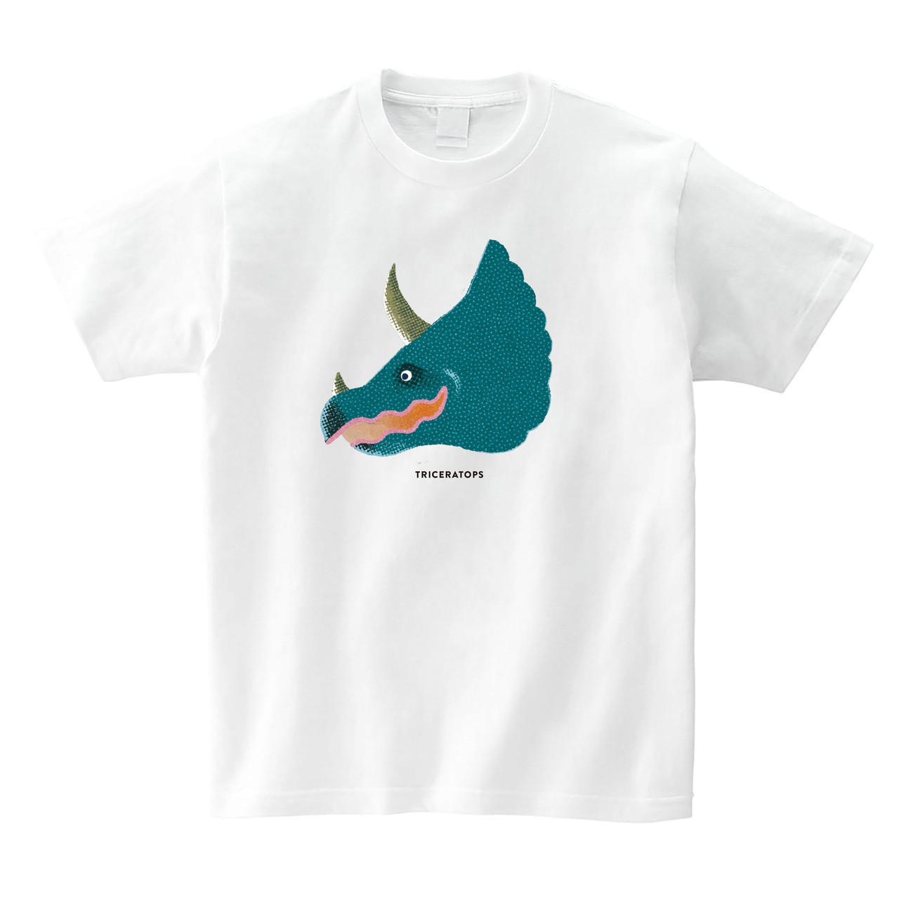 不適な笑みを浮かべるトリケラトプスのTシャツ。